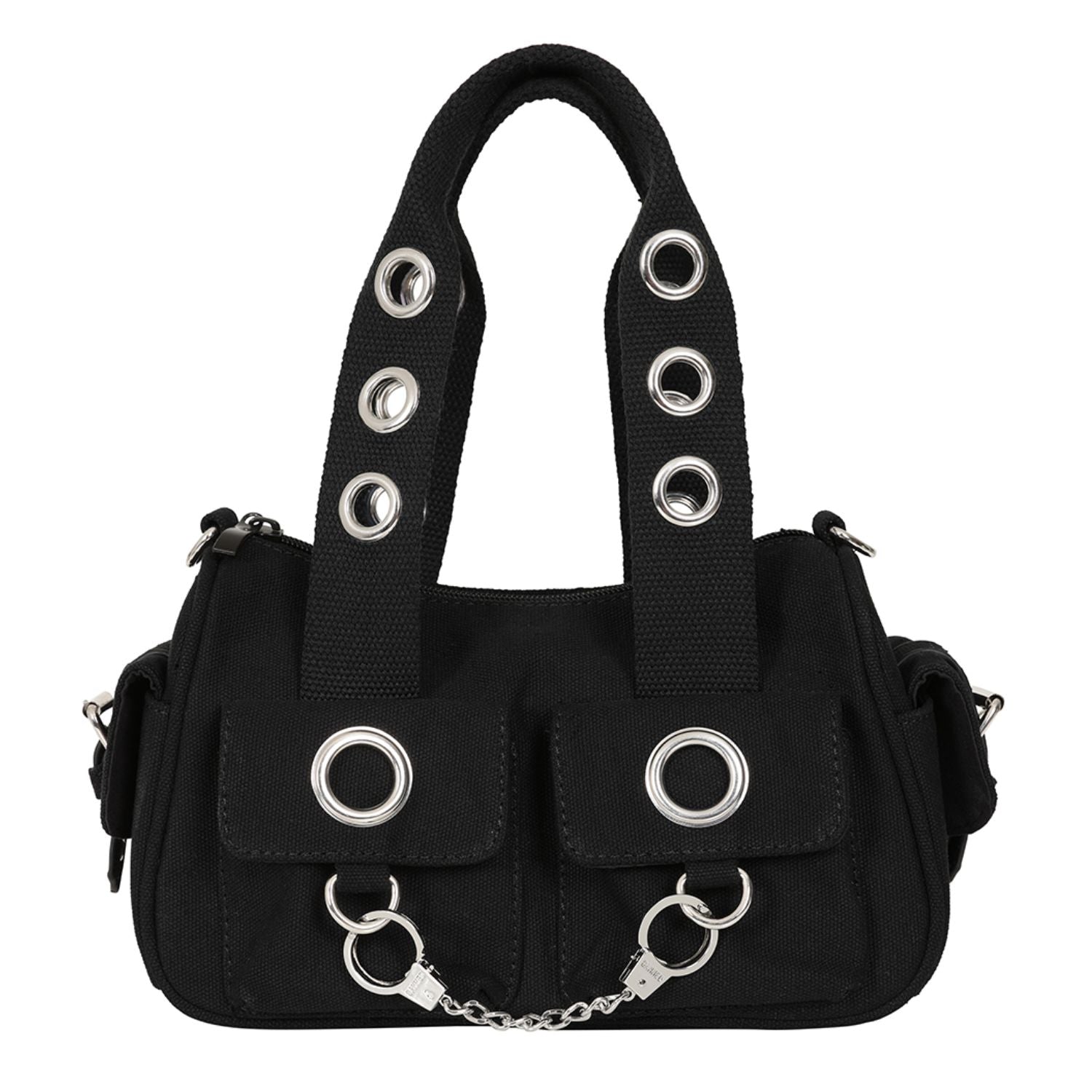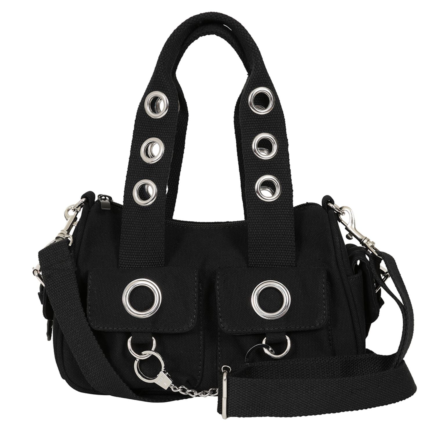 This mini canvas multi-pocketed grommet shoulder bag is an alt baddie's dream come true. Complete with an adjustable crossbody strap, 5 outside pockets, 2 inside pockets, grommet shoulder straps, and an adjustable crossbody strap.