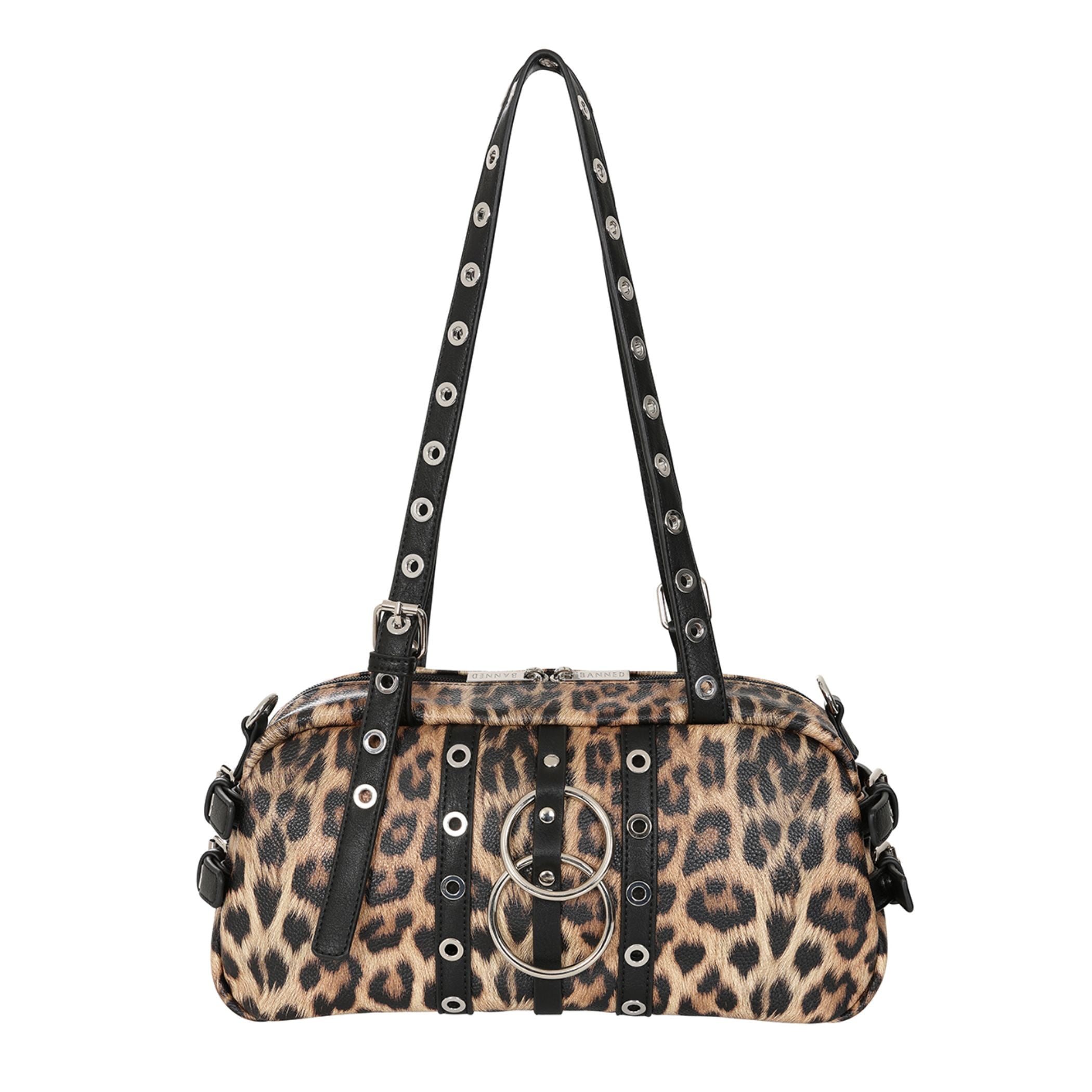 These Circuit Bowler Bags are sleek vegan leather shoulder bags with double O-ring hardware, grommet straps, on a bowler silhouette. These edgy bags hold medium to small-sized essentials, making it a perfect everyday bag.