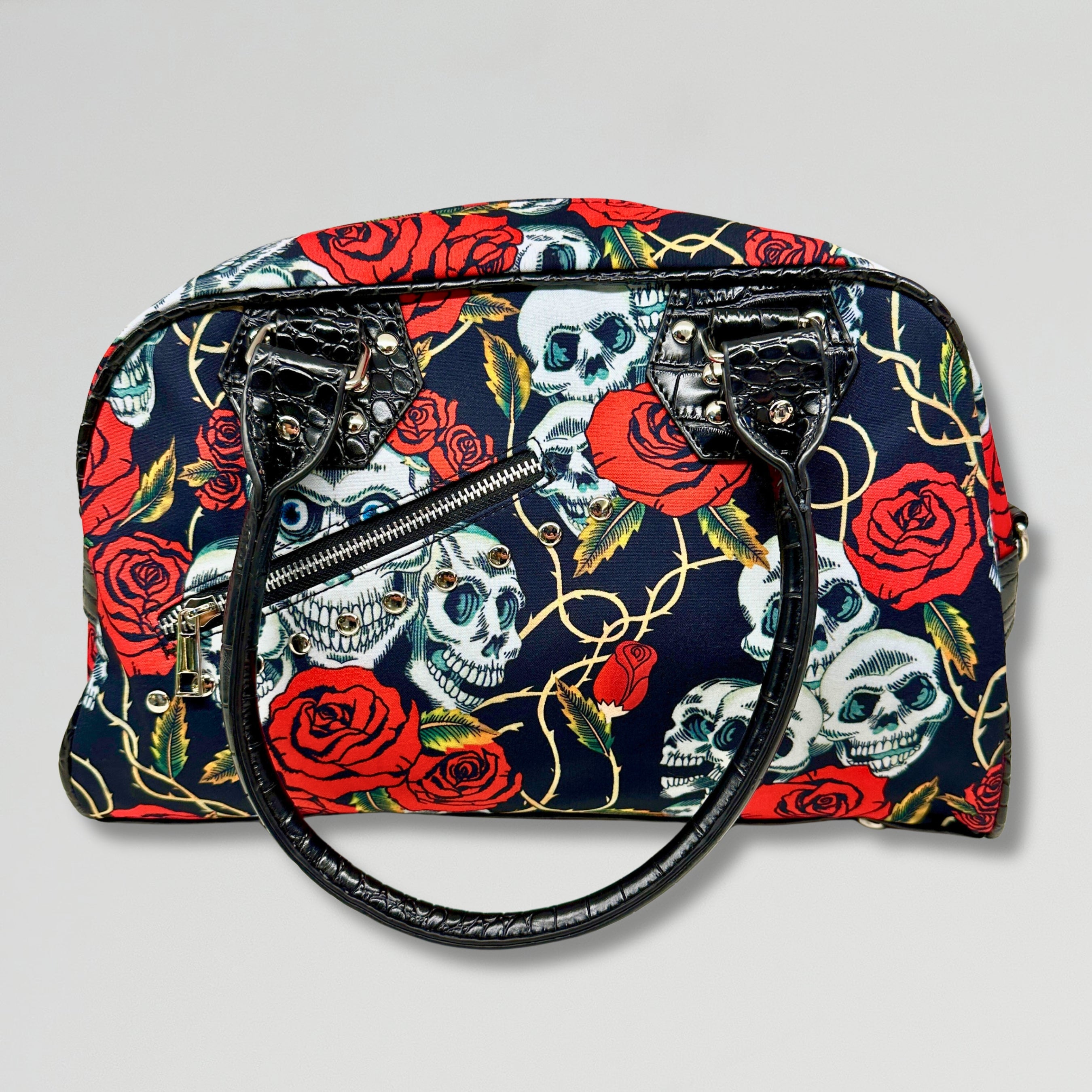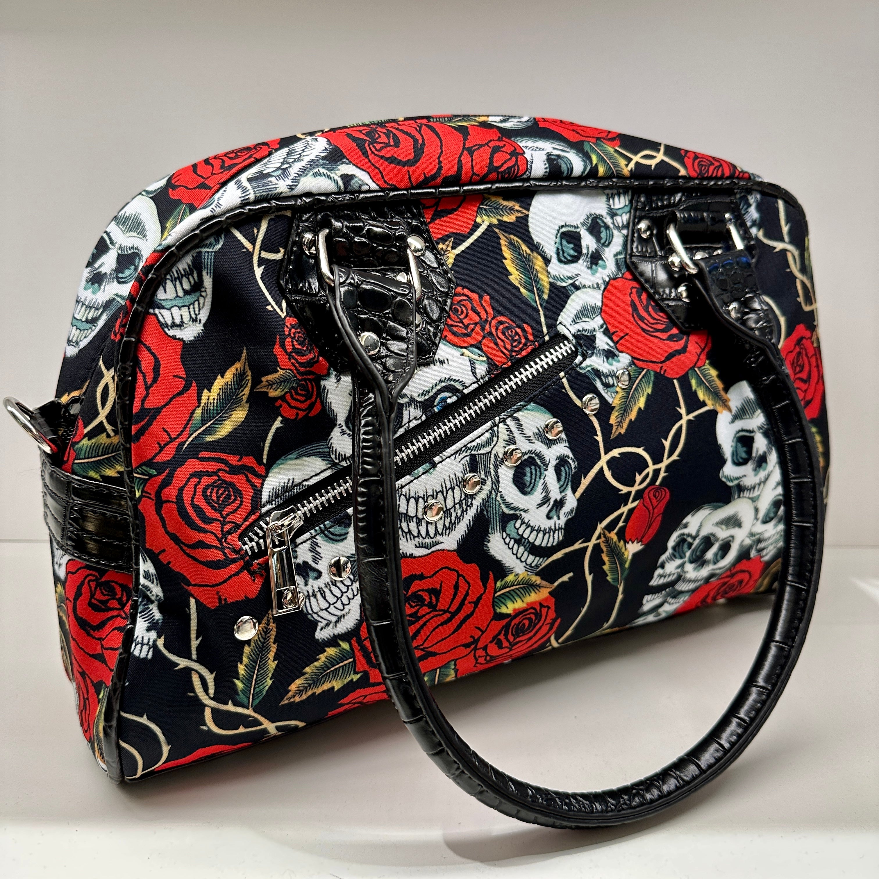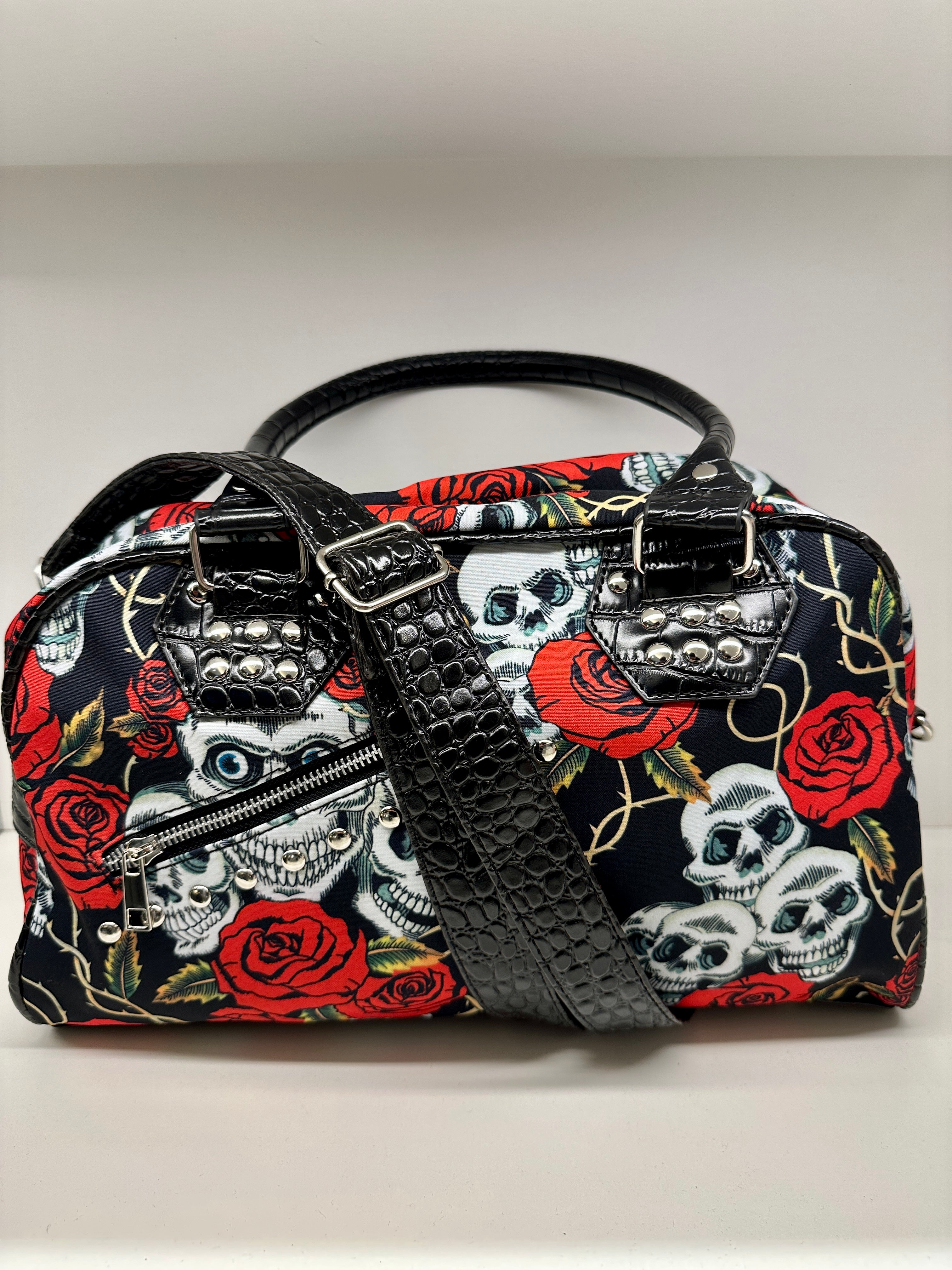 Skull N roses shoulder bag with croc like adjustable shoulder strap.