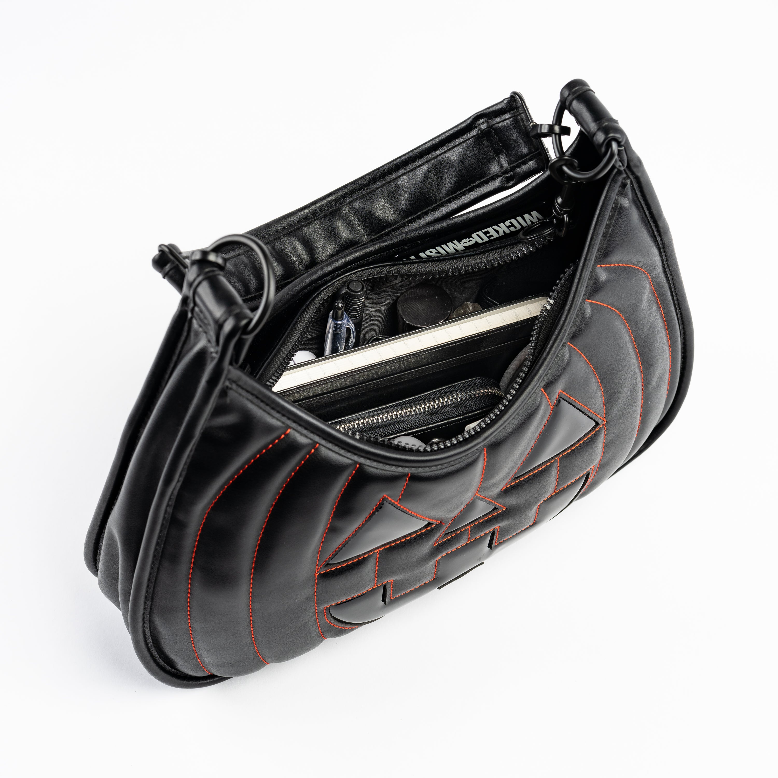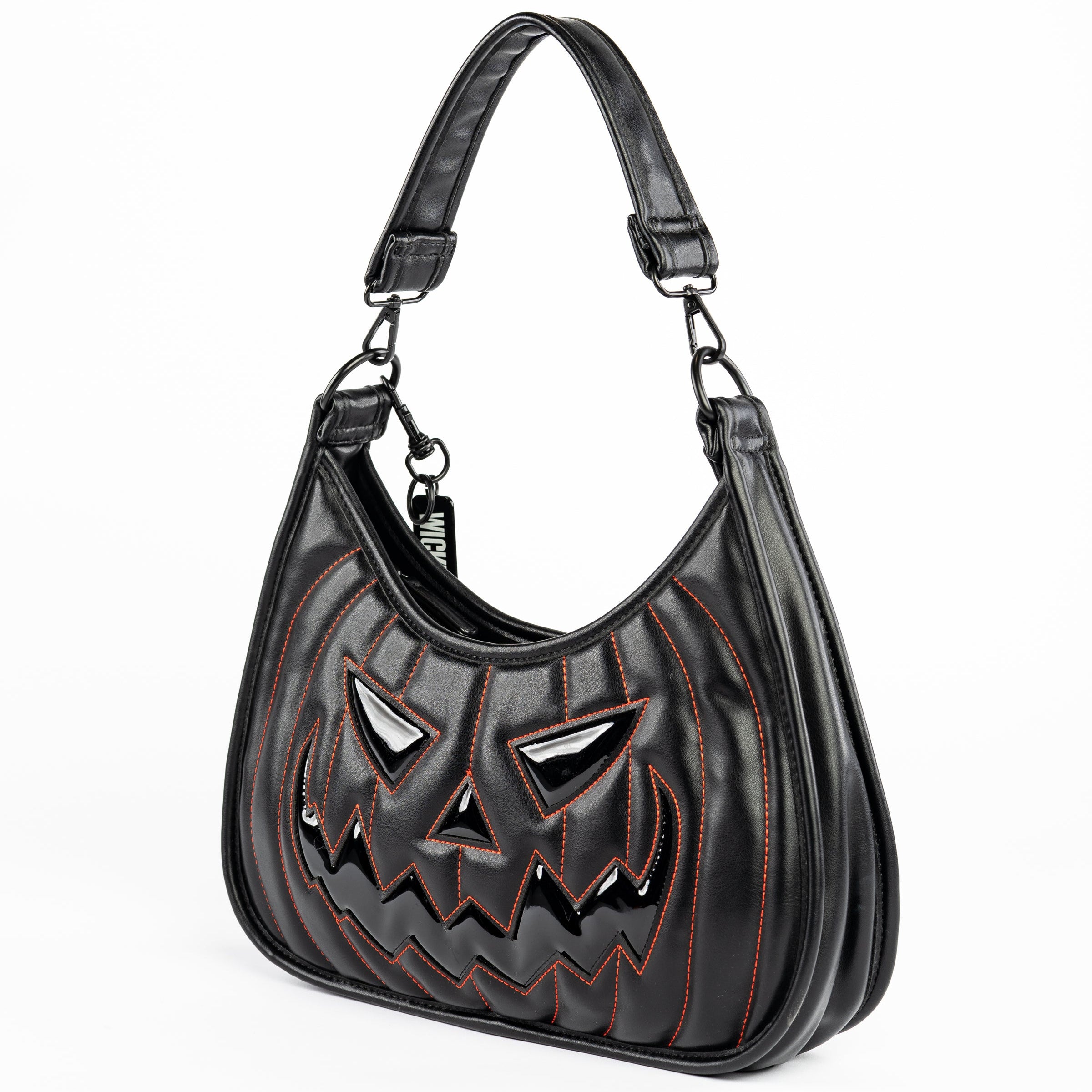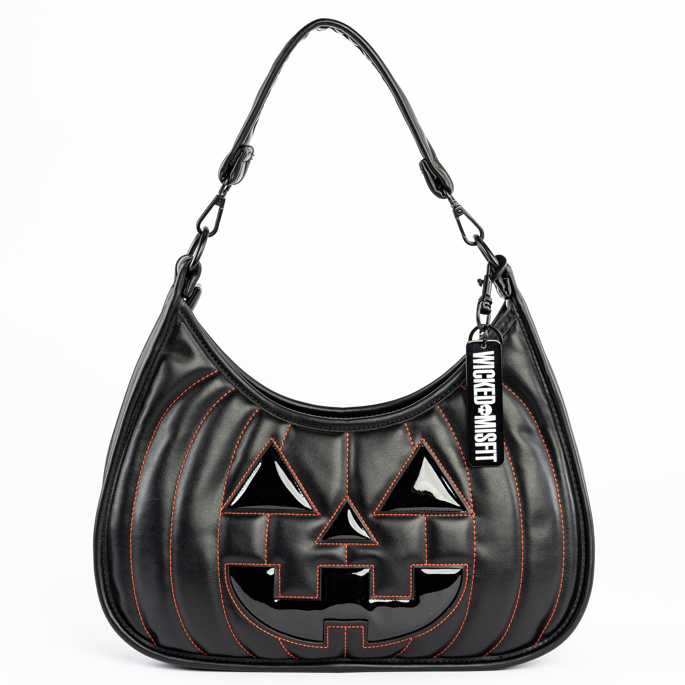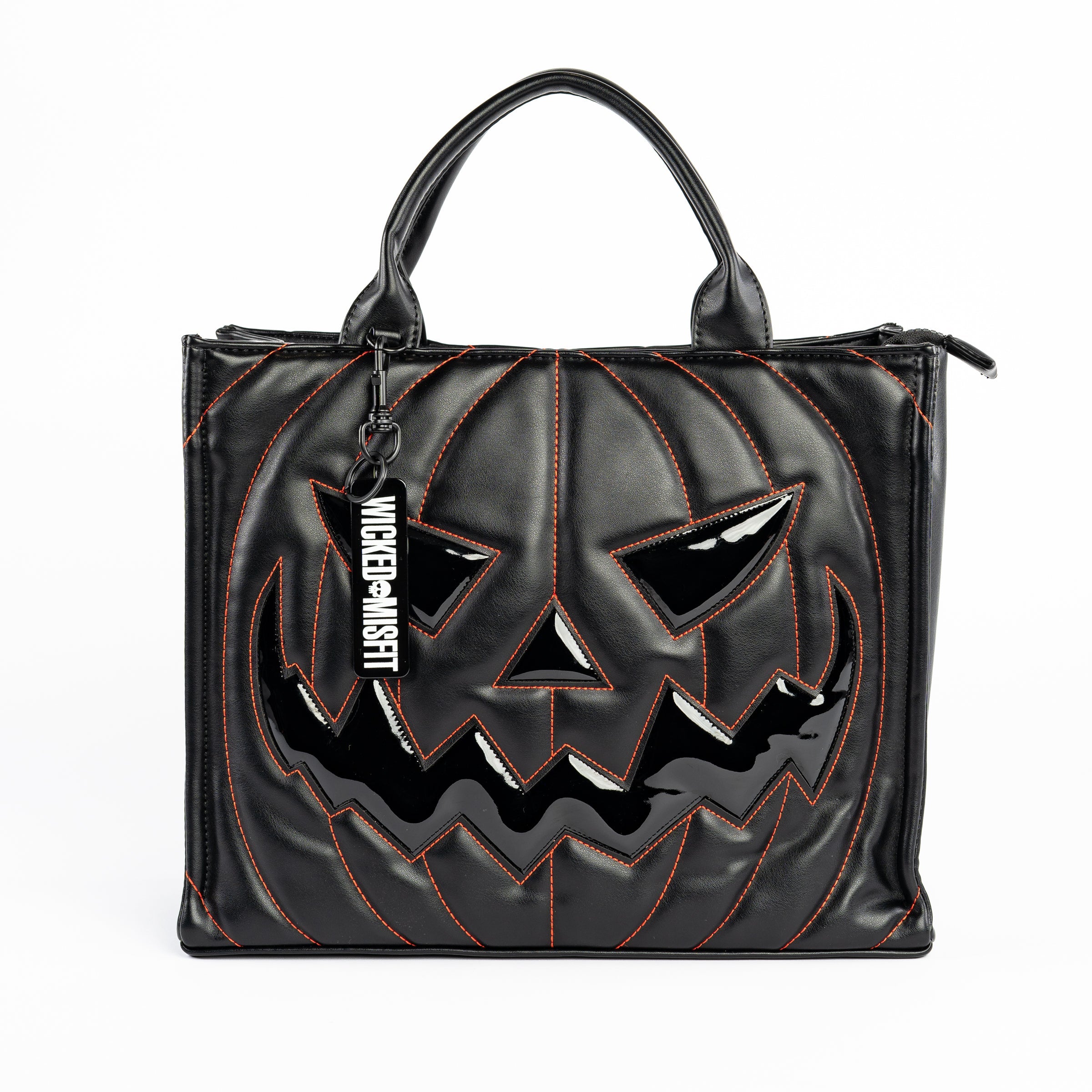 Our Pumpkin Bag Collection brings spooky season energy to year-round spooky lovers. Designed in two silhouettes, a sculpted shoulder bag and a structured tote, each piece is crafted with glossy jack-o’-lantern appliqué, bold contrast stitching, and sleek vegan leather. The shoulder bag is perfect for small to medium essentials, while the Jack Tote easily fits a 14-inch laptop along with your larger must-haves.