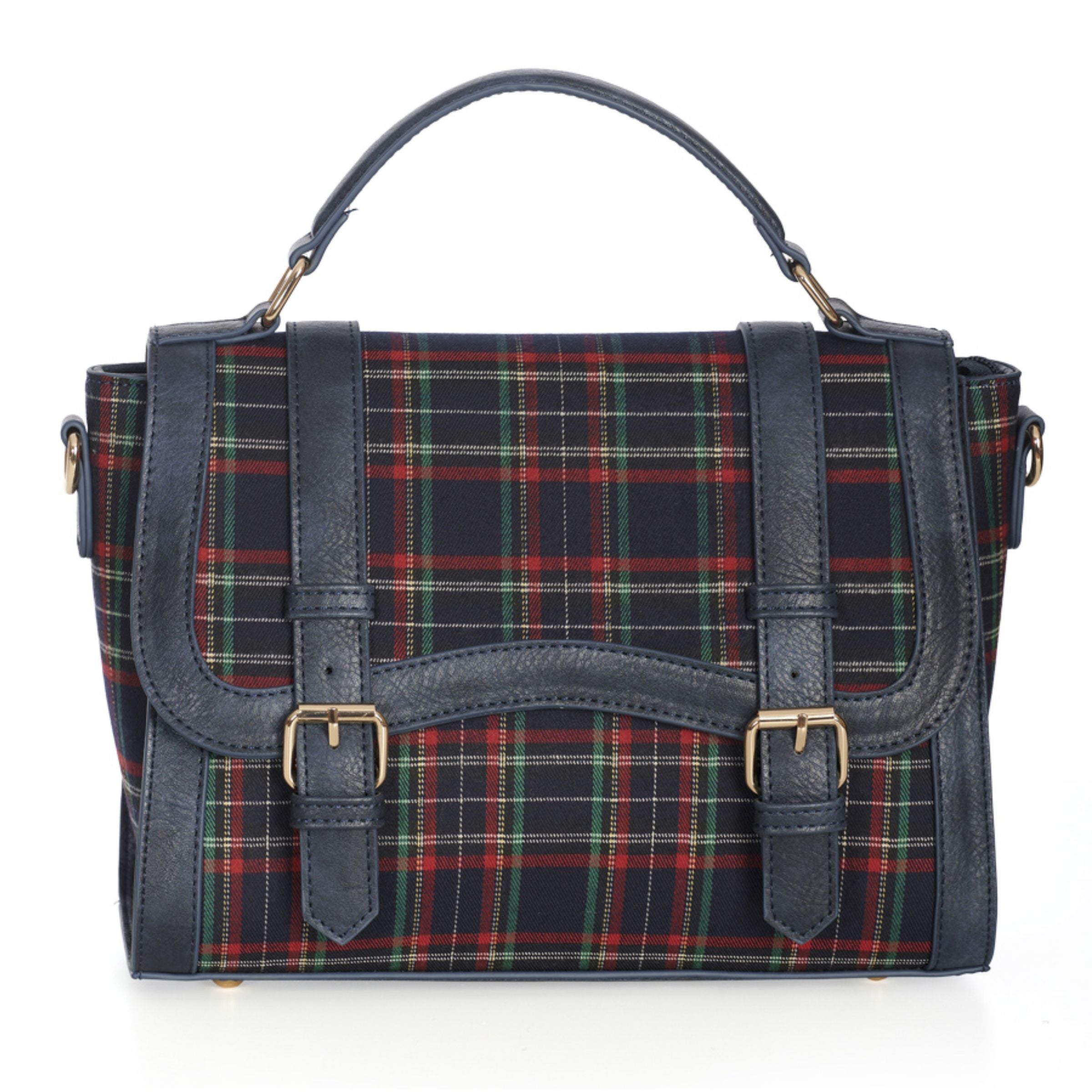 This gorgeous plaid satchel makes for the perfect everyday bag. Well made from high-quality vegan leather and sturdy enough to retain it's shape no matter what you stuff in it. Complete with its gold hardware and scholarly plaid fuses gothic academia with royal edge. Large enough for an 11-inch tablet, a large phone, and a full-size wallet. Wear it as a handbag or crossbody with its detachable strap.