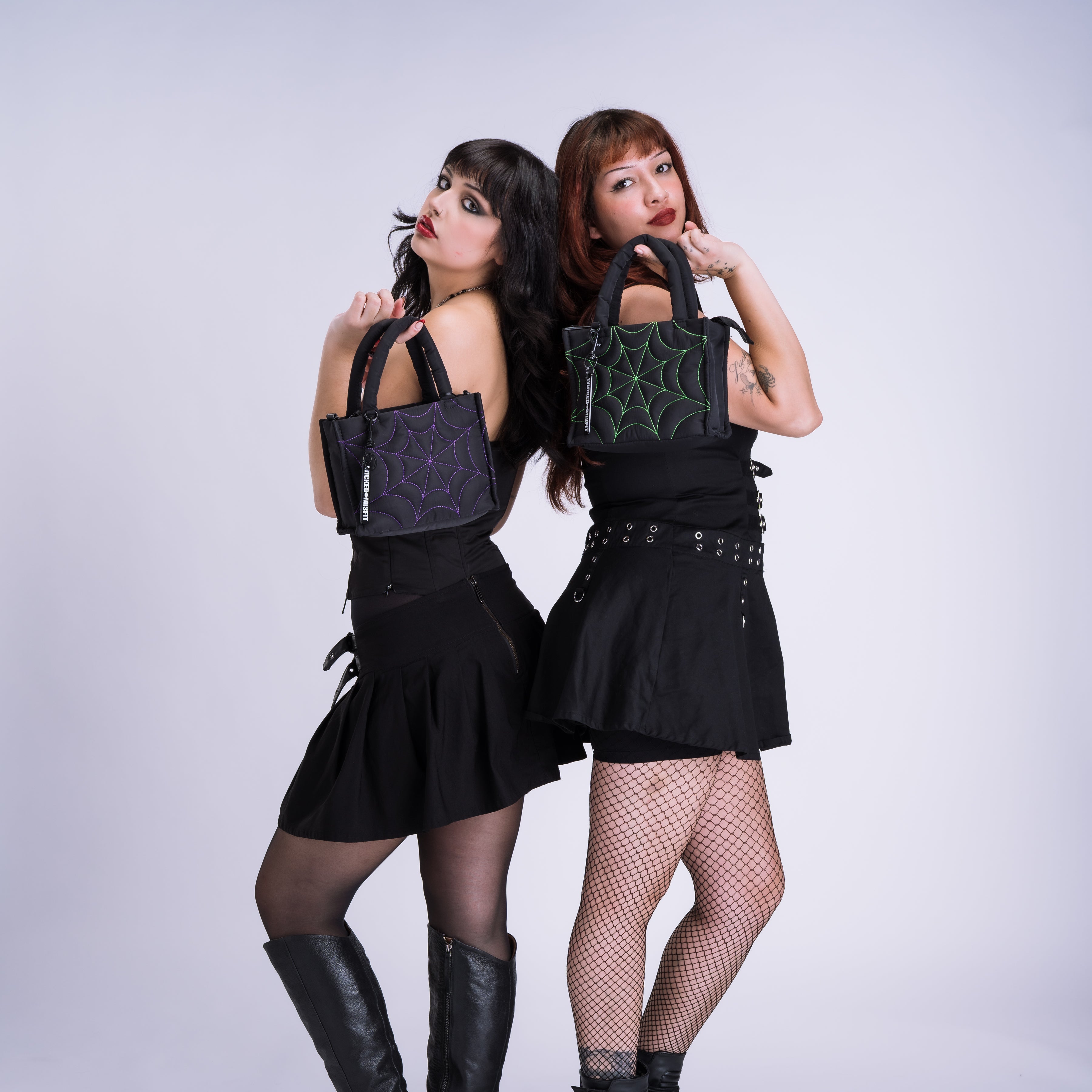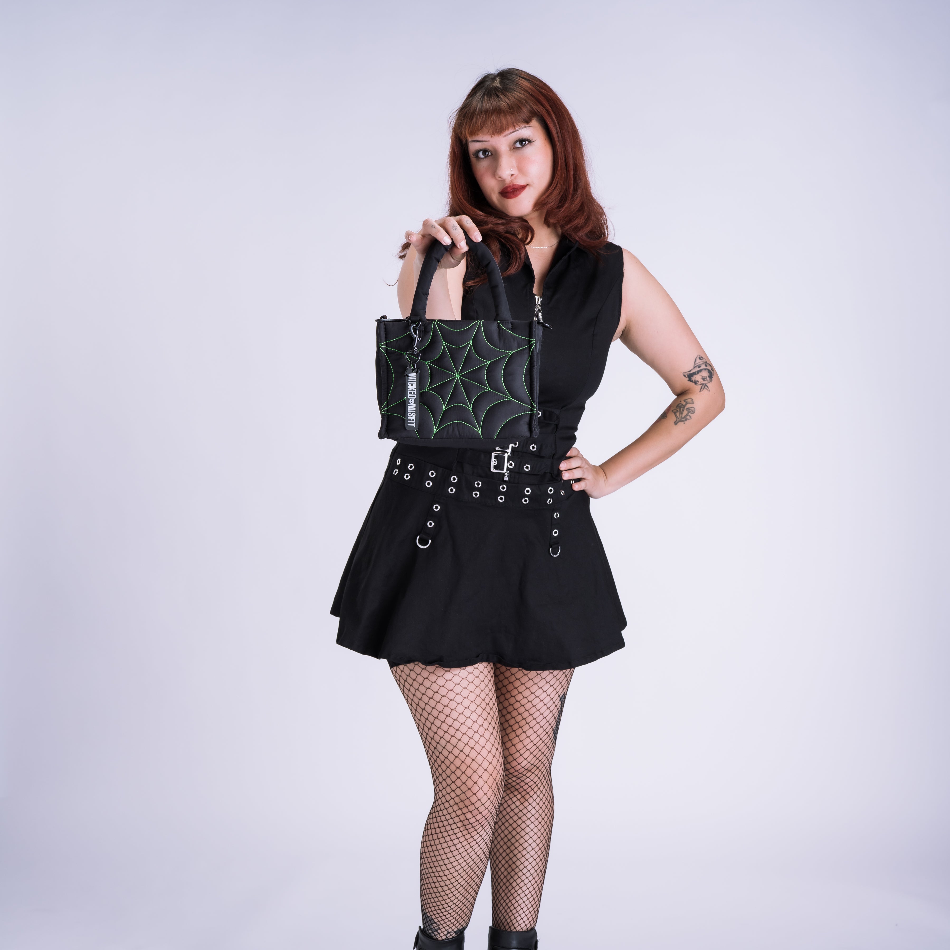 Your new go-to sustainable Mini Spiderweb Puff Totes. Crafted from durable recycled nylon, this mini puff tote is built to carry your essentials without sacrificing that signature spiderweb design. On the inside, you’ll find a padded sleeve with a secure Velcro closure, two open pockets, and an interior zipper pocket for easy organization. It’s finished with our signature Wicked Misfit charm. Perfect as an everyday carryall.